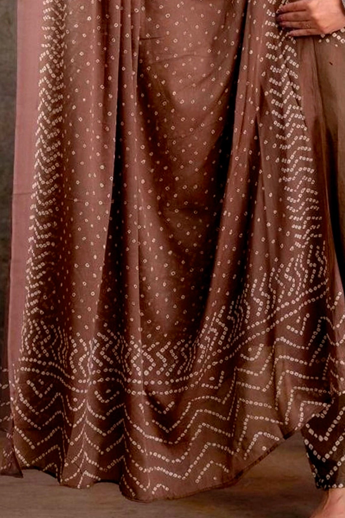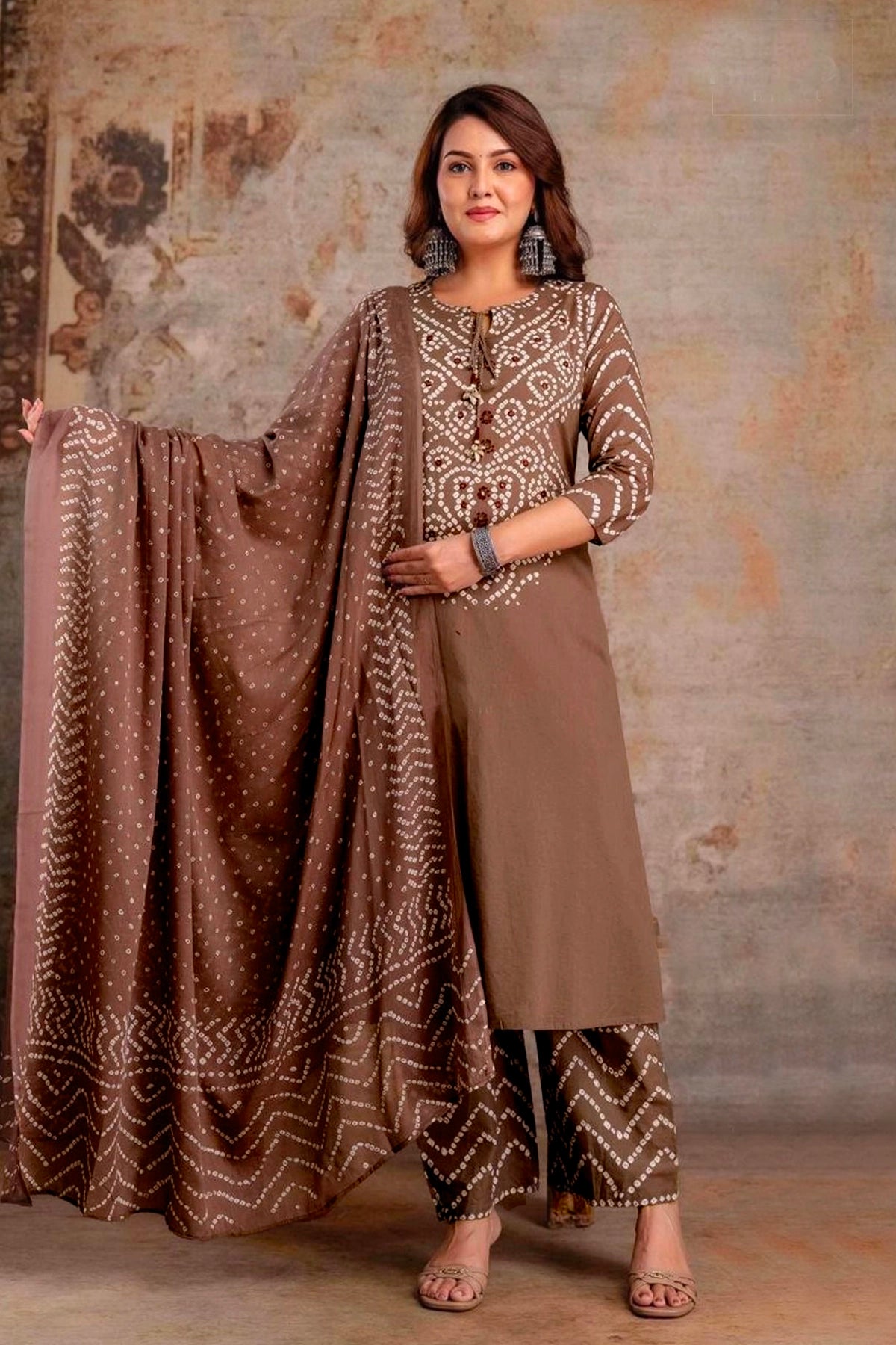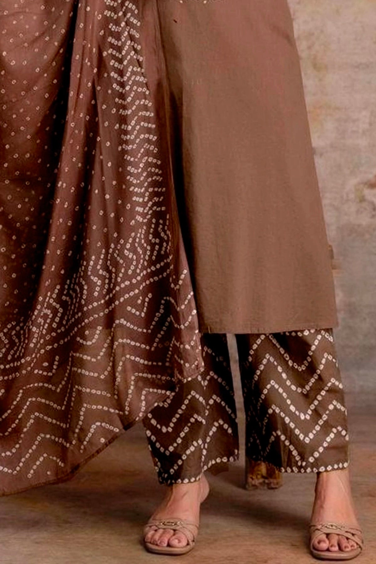Brown Bandhani Printed Cotton Kurta Set with Dupatta