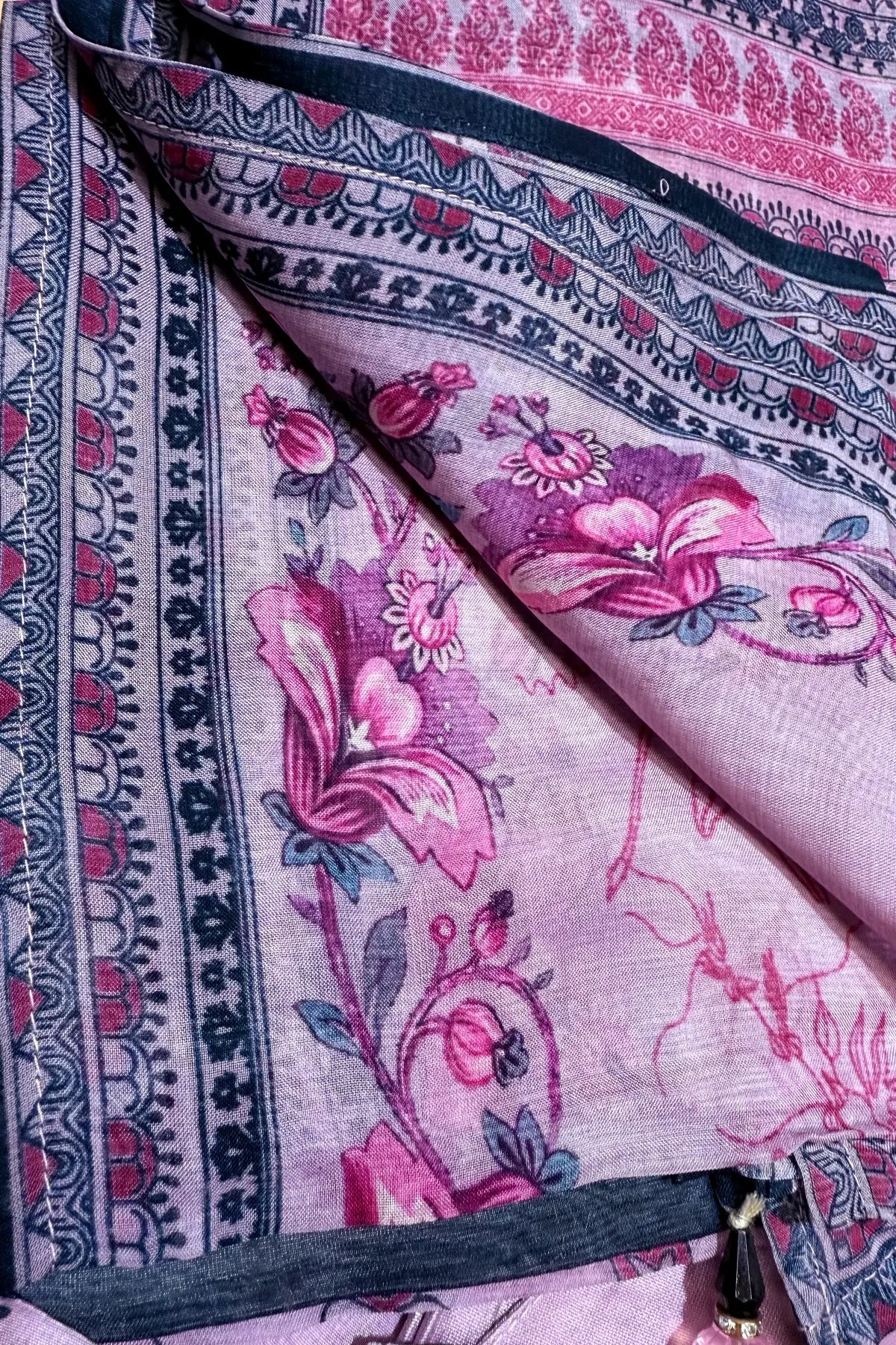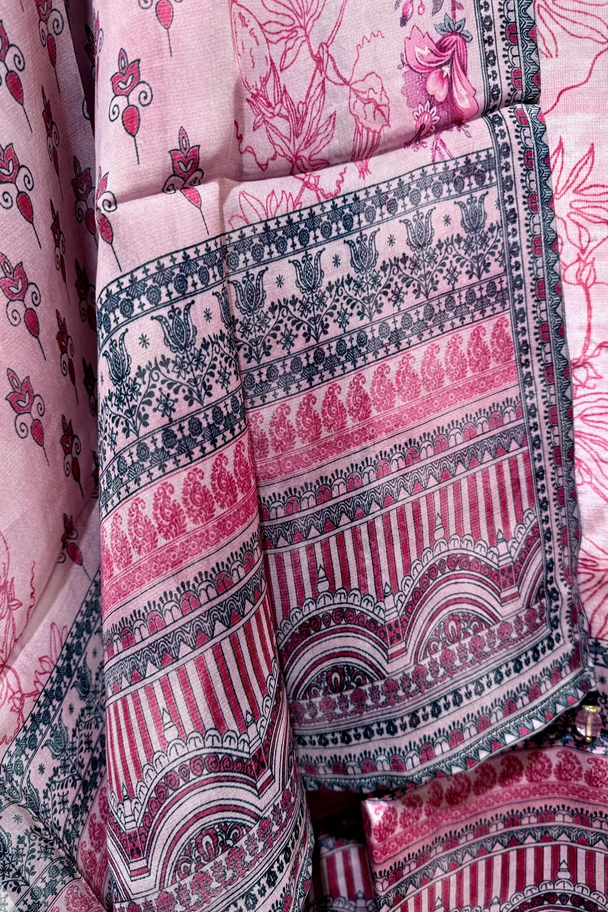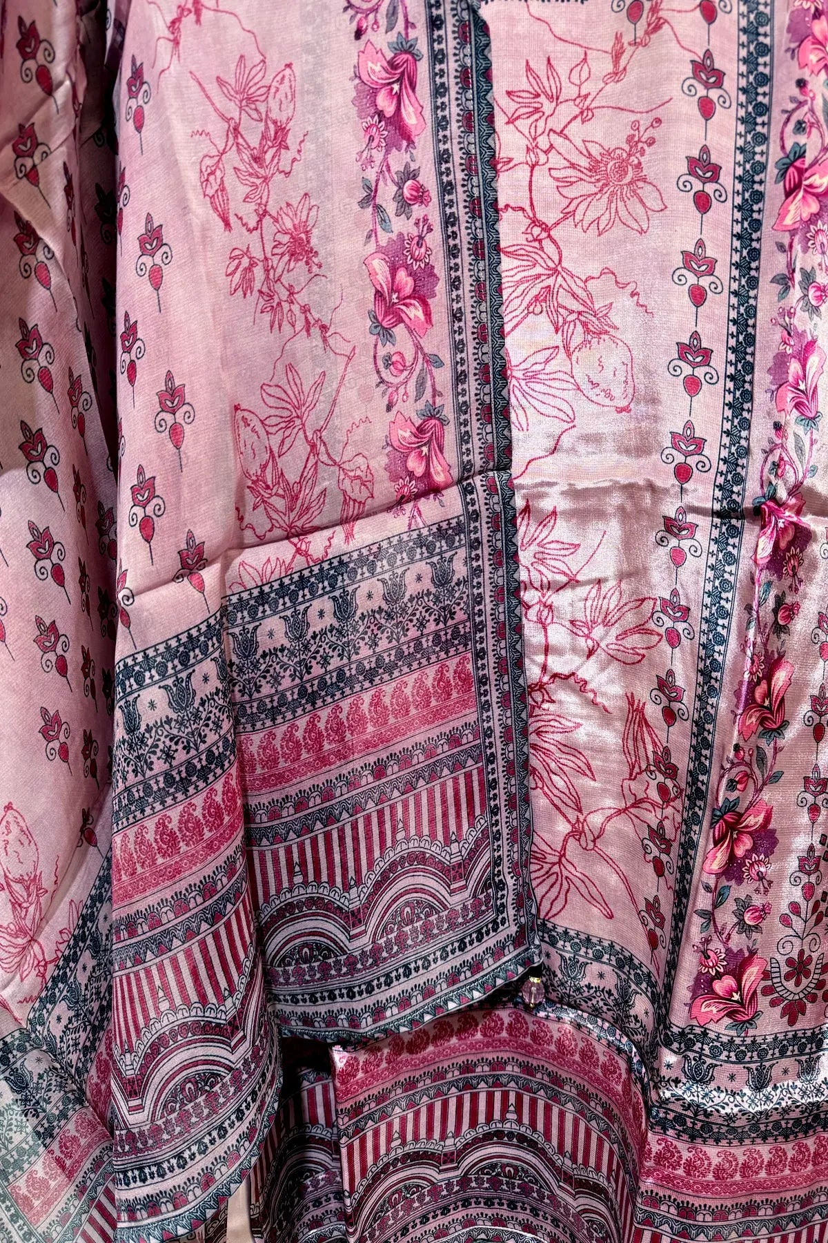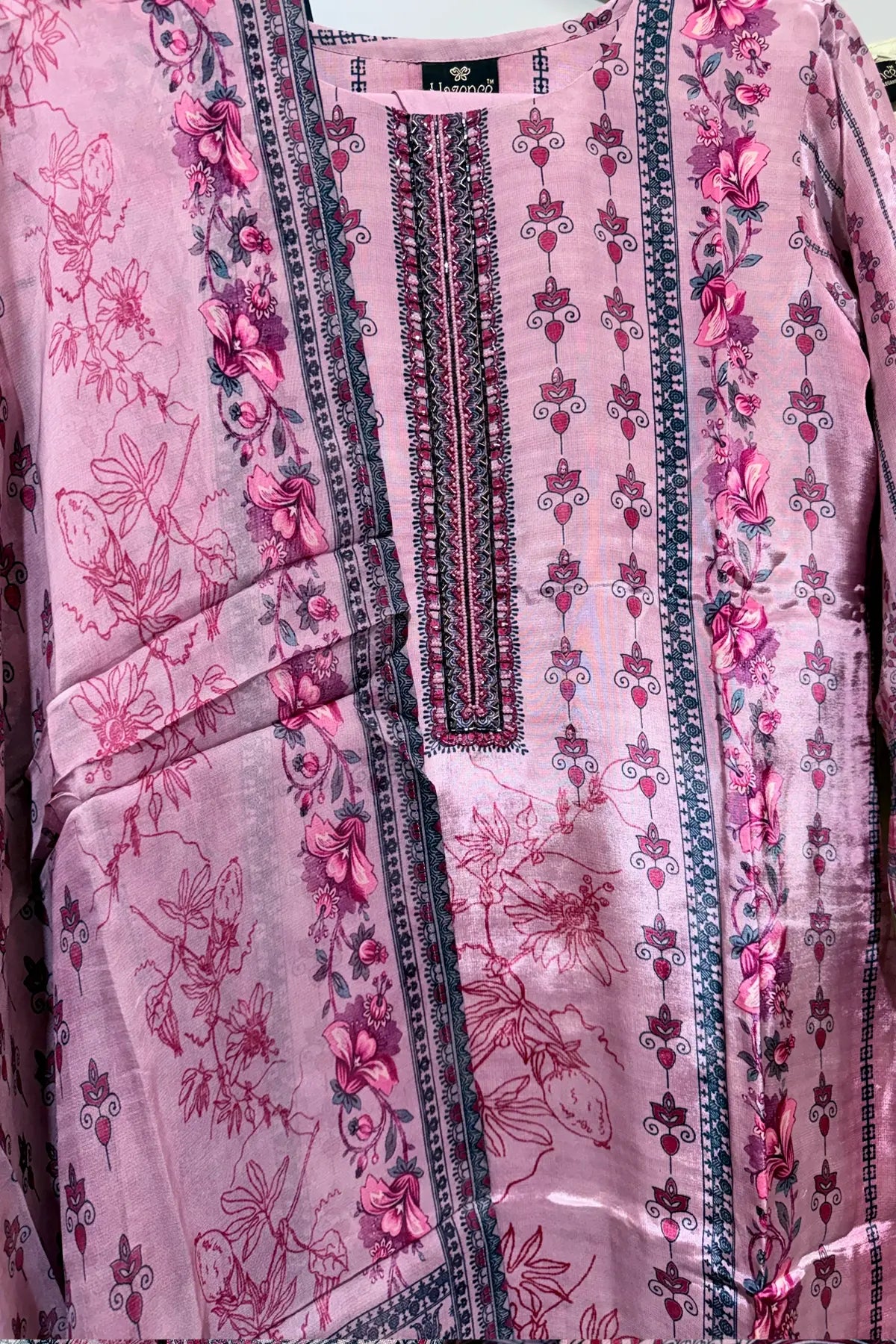 Radiant Elegance: Pink Embroidered Crepe Silk Pant Style Set