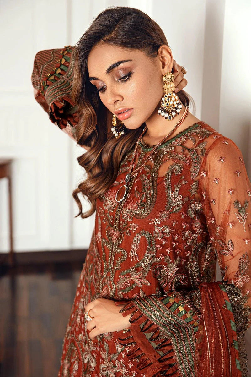 Expertly crafted from high-quality embroidered net fabric, this elegant 3-piece ensemble is a refined addition to your formal wardrobe. Beautifully adorned with intricate thread embroidery and shimmering sequins, it reflects timeless craftsmanship and sophisticated design. Perfect for Eid gatherings, festive celebrations, and formal occasions, this traditional outfit is designed to make every moment special.