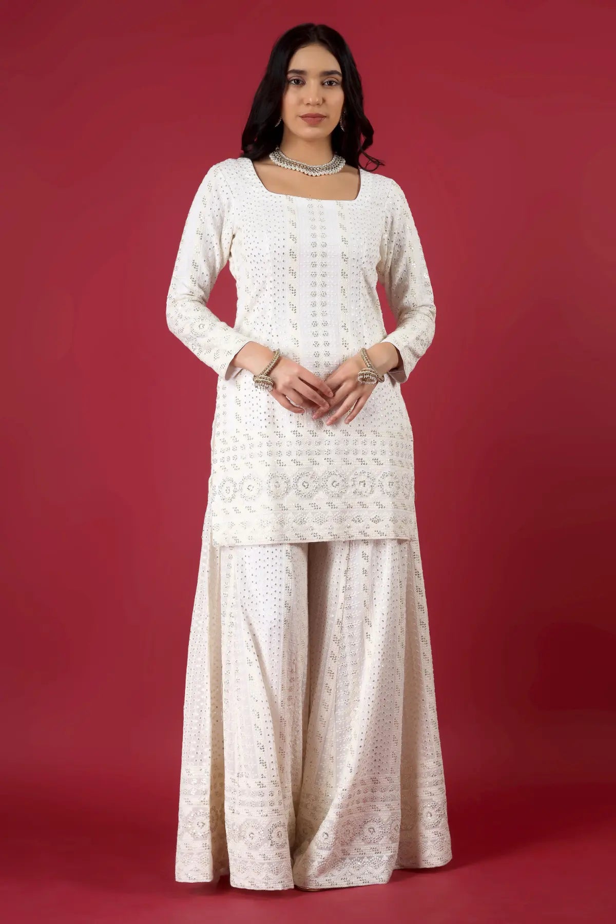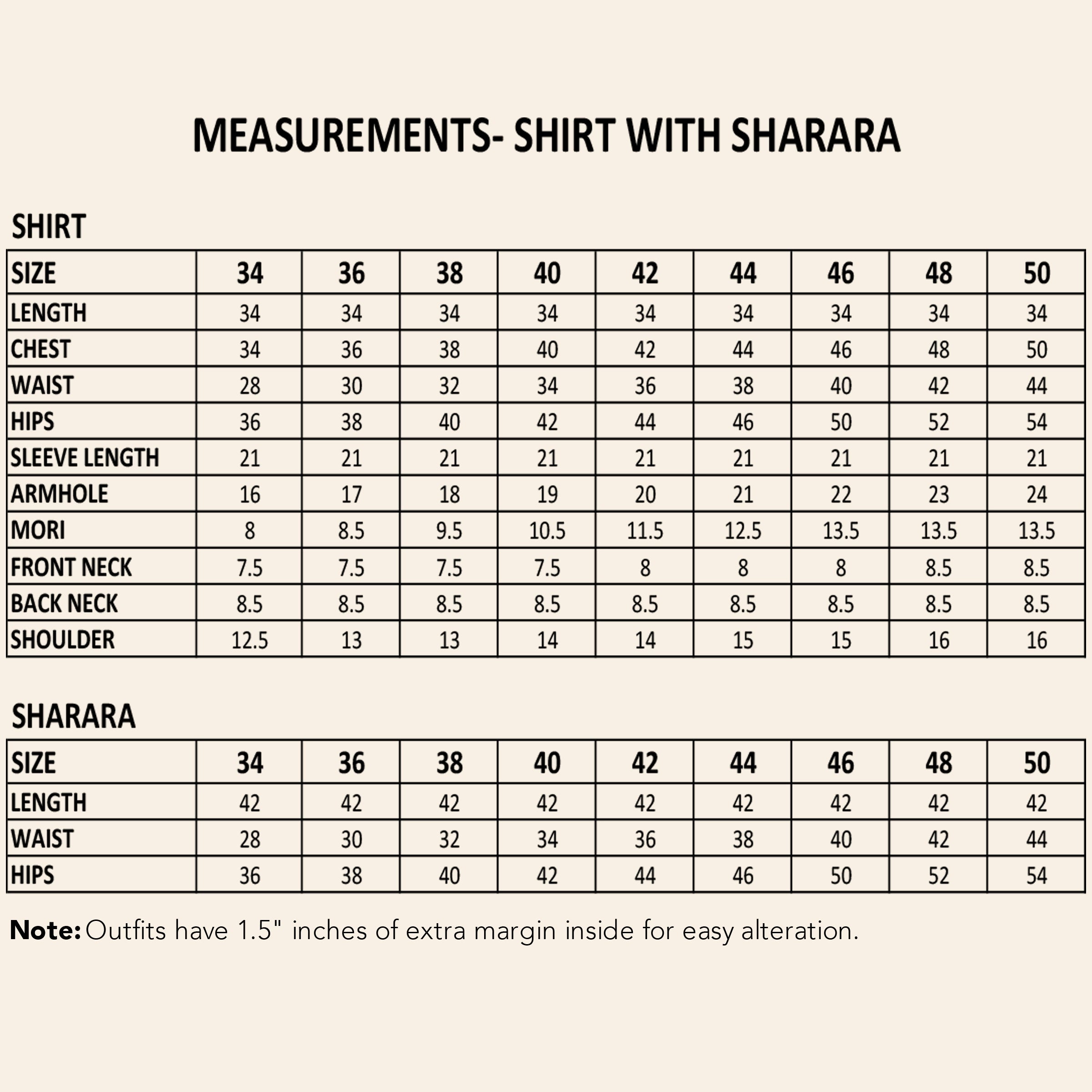 Bottom: Coordinated embroidered georgette sharara with elastic waistband (Fully Lined).
