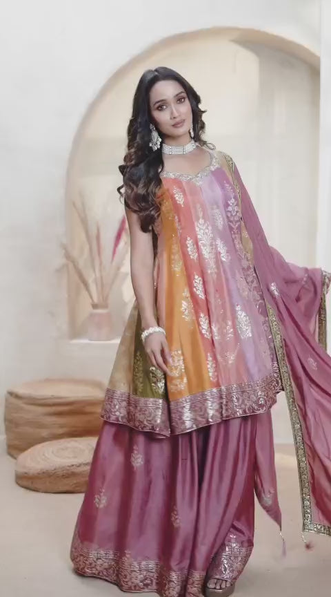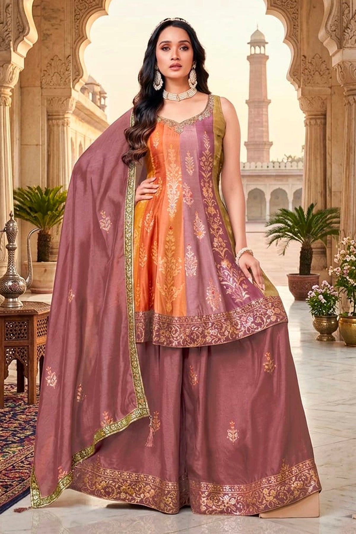 RosyBrown Mauve Dola Silk Banarsi Sharara Suit