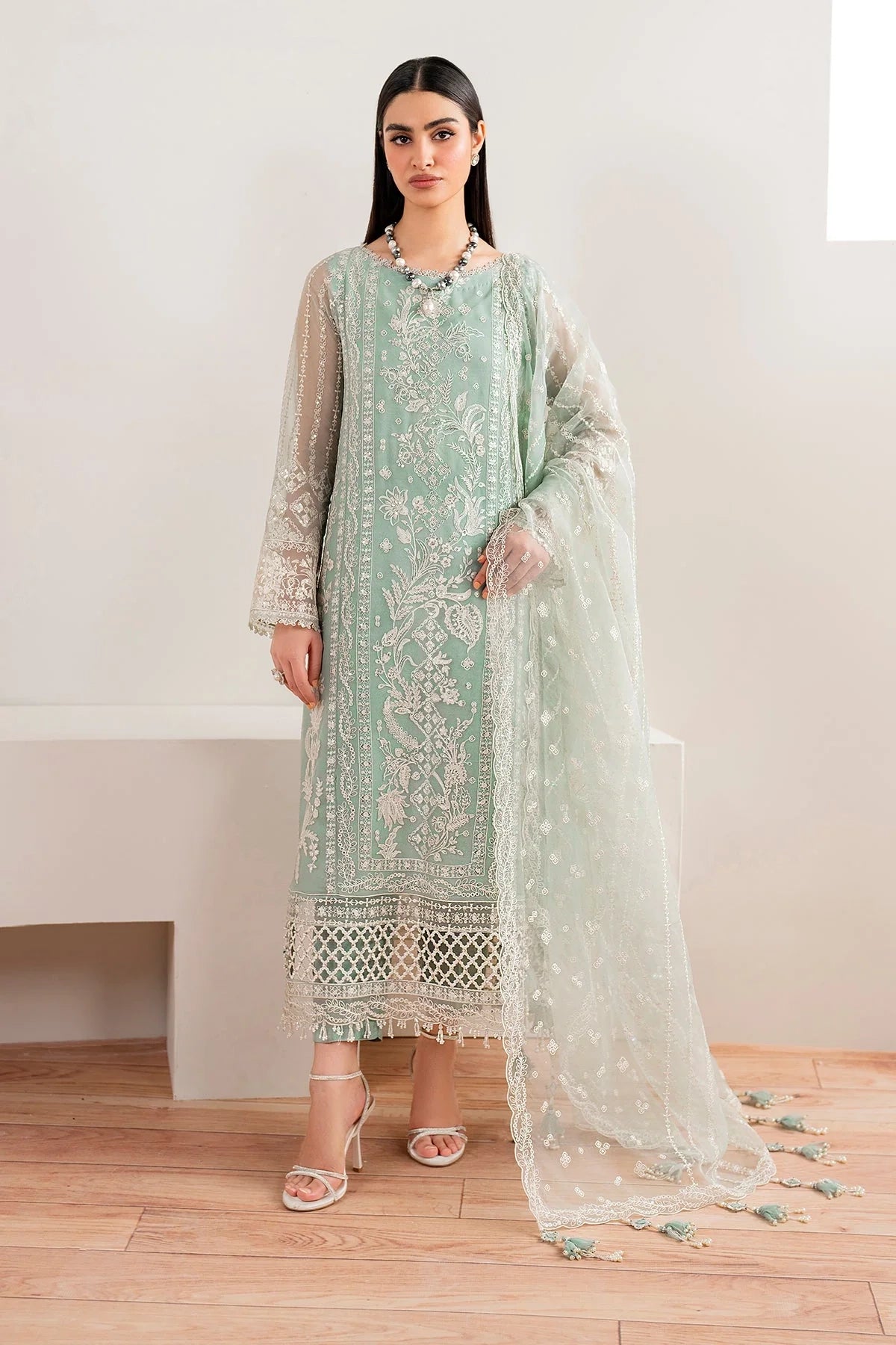 Dupatta: Paired with a luxurious Embroidered Organza Dupatta (2.70 yards) for a voluminous and graceful drape.