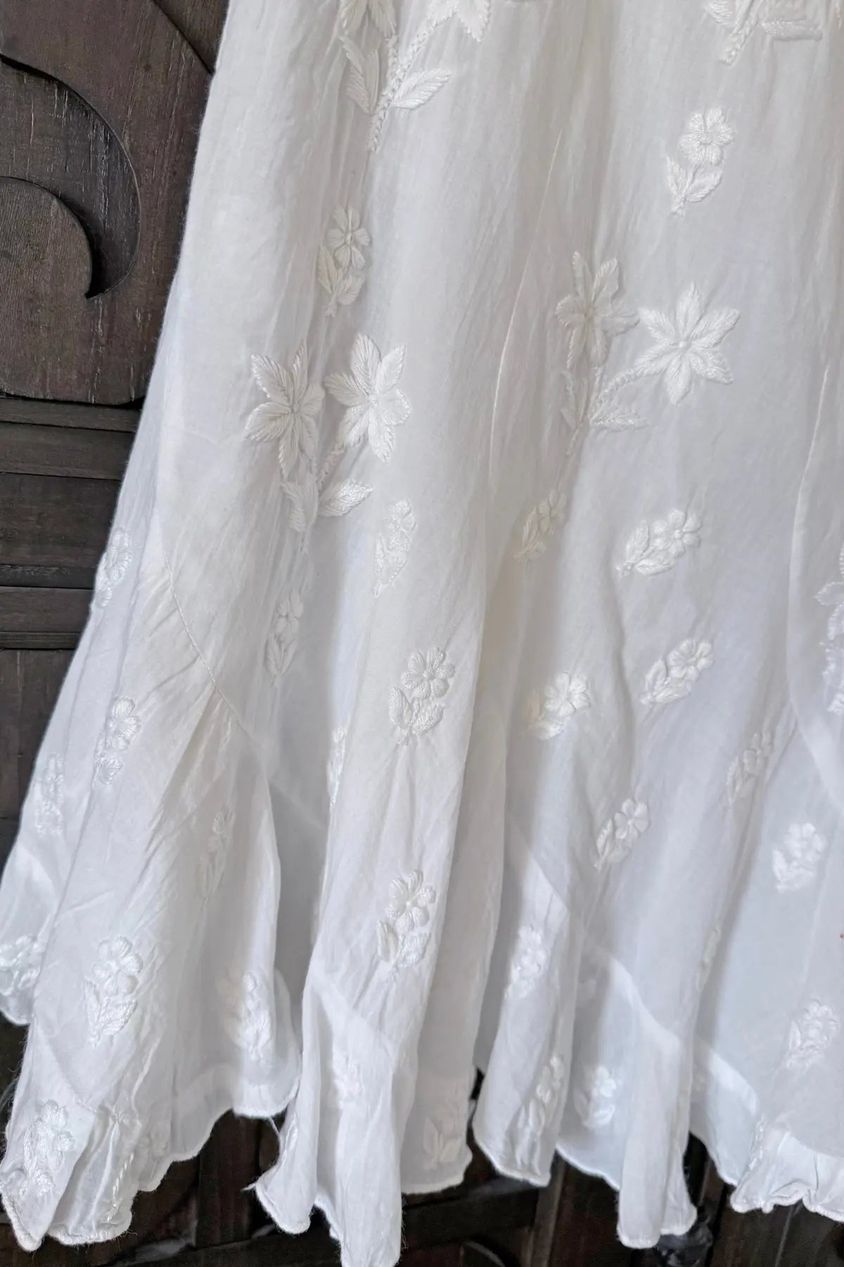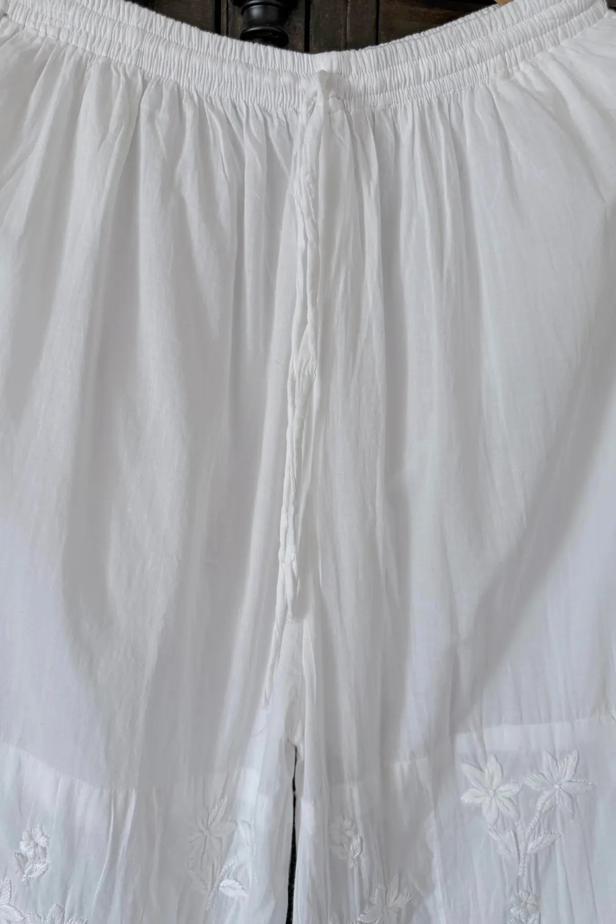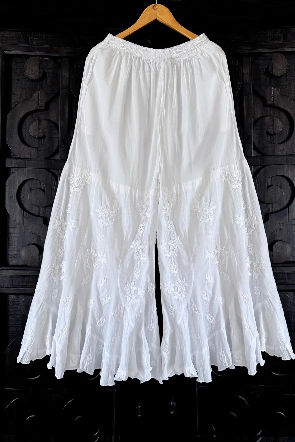 White Pure Mulmul Cotton Hand-Embroidered Chikankari Sharara Pants