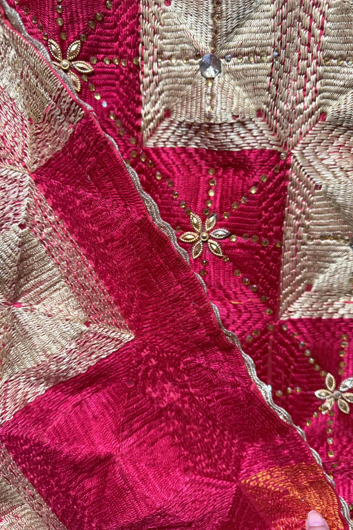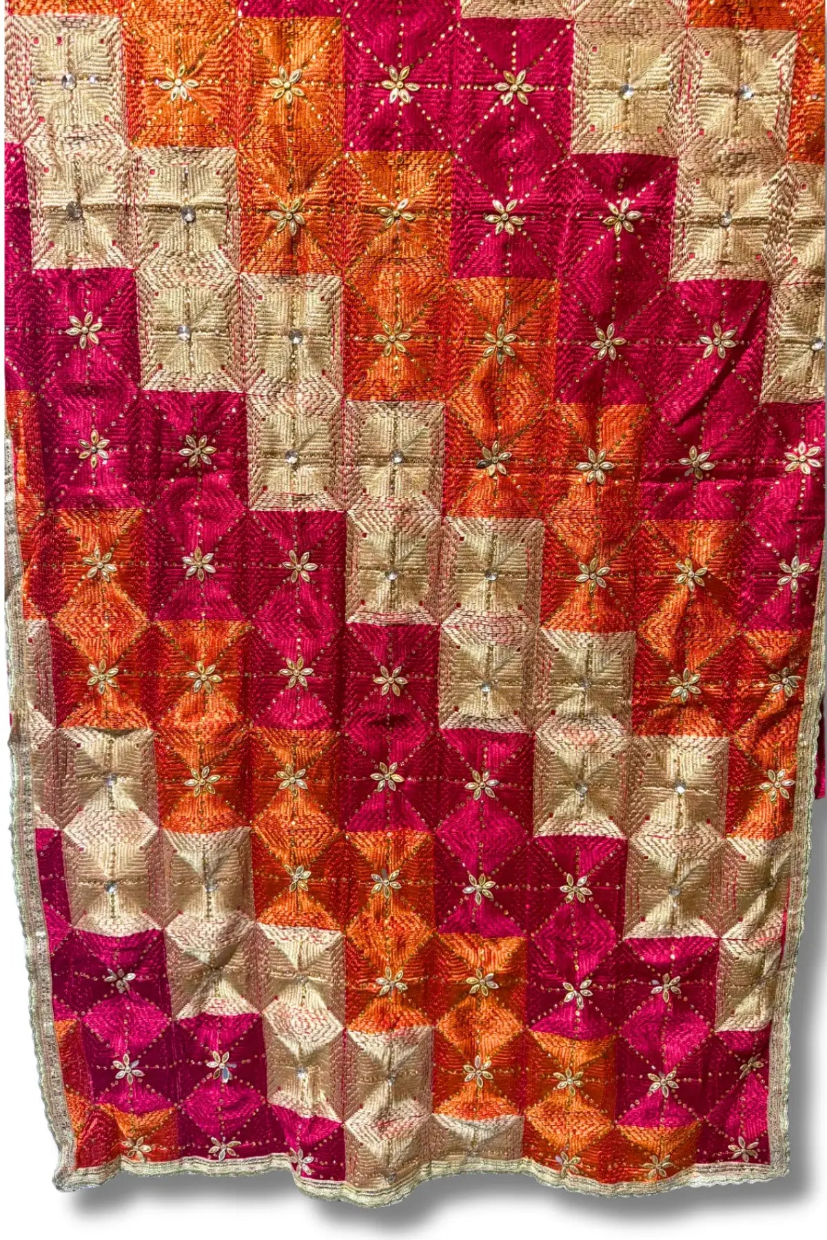Embrace Punjabi Heritage with our Exquisite Hand-Embroidered Phulkari Dupatta
